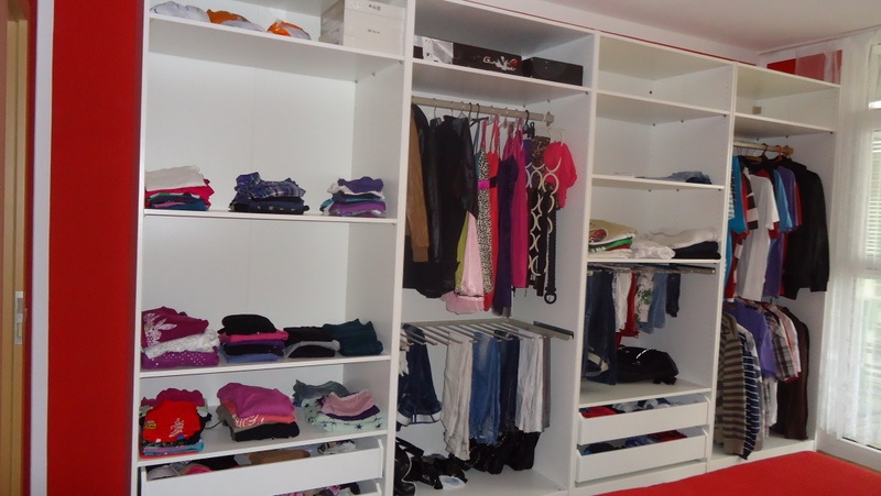 Holky, všechny máte šatníky moc krásné. Taky se přidávám, skříň máme z ikei, zatím bohužel bez dveří, protože jsme si nevzaly k dveřím panty..