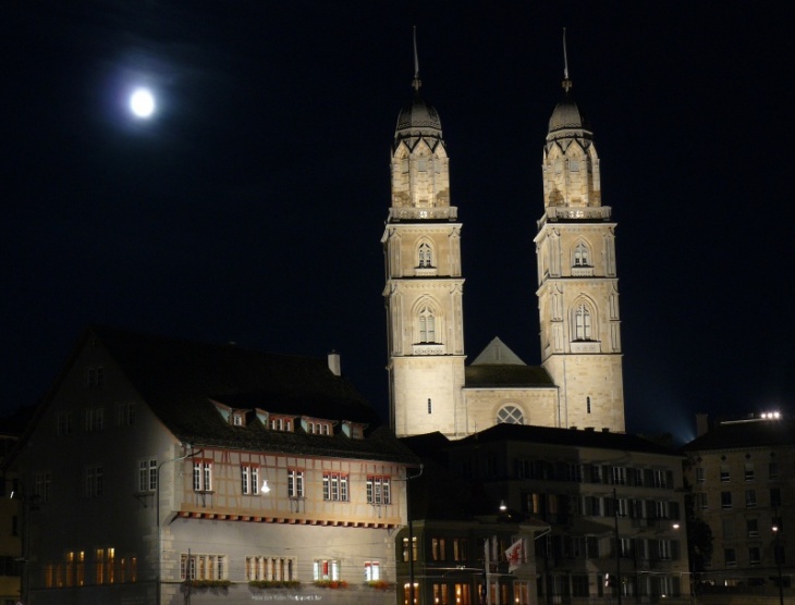 Foceno stále tím samým Panasonic Lumix FZ8. první dvě jsou fotky katedrály v Curychu. Foceno na ministativku na dva různé časy a je pěkně vidět, jak nastavení času mění vyznění noční fotky...Já preferuju teplejší tóny a tedy delší časy, ale na druhé fotce se mi zase líbí měsíc - nedělá "hvězdičku"