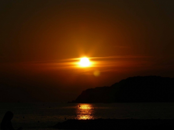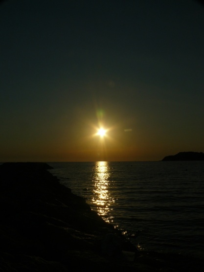 A poslední - západ slunce nad mořem. Ukázka dvou fotek, jedna focena v manuálním režimu - čas 1/1300 s, clona F5.6. Druhá focená ve scénickém režimu západ slunce pro zvýraznění červené barvy - na to jsou tyhle režimy fakt dobré