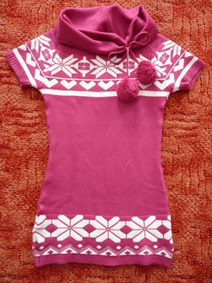 Prodám jednou nošené teplé pletené svetrové šatky/delší svetr. Měla jsem na sobě jednou, chvilku,takže 100% stav, nikde naztarhnuto, žádné žmolečky, nic prostě nové. Jen upravené od švadleny na vel. XS-S,ale vejde se určitě i malé M. Moc pěkné detaily, bambulky u výštřihu, vhodné k legínám, dzinám nebo samostatně se silnějšími silonkami.