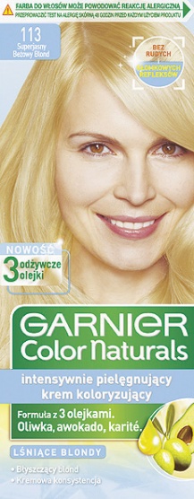 Ja pridávam svoju skúsenost s Garnier naturals 113 (superzosvetlujúca zlatá blond) chcela som vlasky blond ale teplý odtien,žiadne platinové a chladné,no niesom si istá... Farba vlasy nevysušila,neštípala,nesmrdela,počas farbenia trochu žltla, ale nad tým som mávla rukou,po dofarbení boli vlasy jemne žlté a korinky do zrz,ale nič katastrofálne, ešte som to chccene-nechcene premyla silverom. Neviem, nabudúce pojdem asi do duhovej blond 102,nejaké skusenosti?