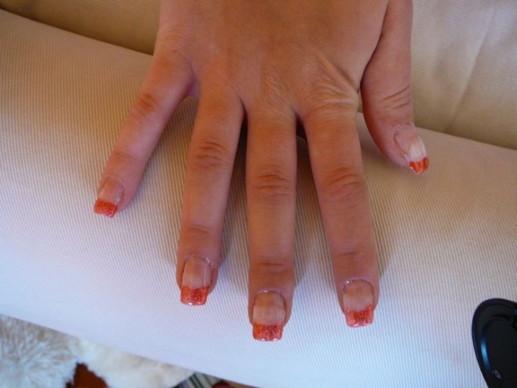 Tvar by šel,jen ten tip nemáš vůbec spilovaný-opravdu musíš zabrat-nesmí to pálit!- aby jsi to rovnoměrně spilovala bez přechodu a spilovat ten tip i nahoře-nesmí být vidět bílá,tip bude "růžový" jak nehet.Na prostředníčku jsi zvolila zbytečně velkou velikost tipu.
