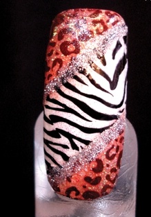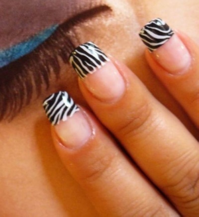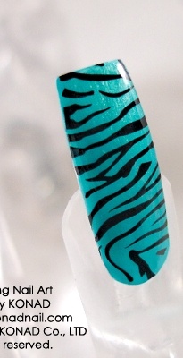 tak to právě vypadá jako zebra, moc se mi to líbí. jsem zamilovaná do zebřích nehtů, ale sama bych to nenakreslila, chtěla bych tu destičku od konadu, kde je zebra