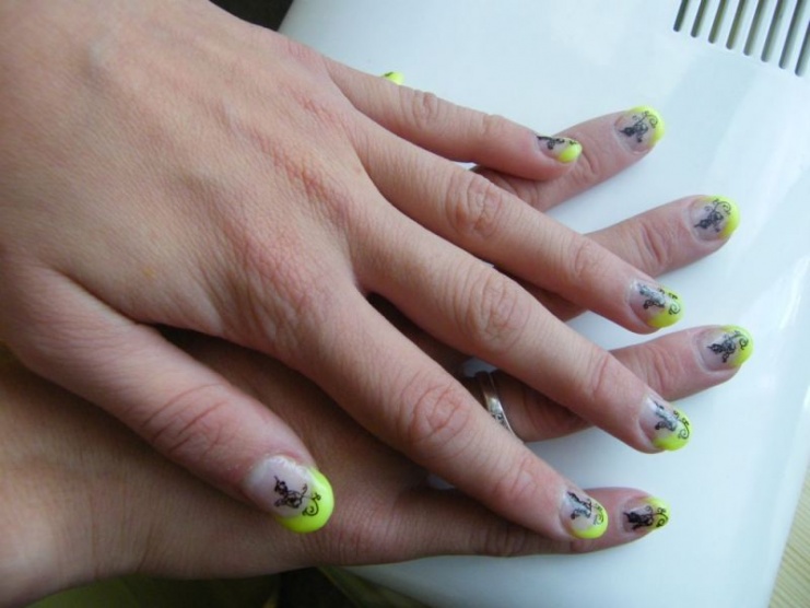 přikládám obrázek nehtů co jsem včera dělala dceři. Je to žlutá neon od beauty lada, moc nekreje a není ani řídký, ani hustý