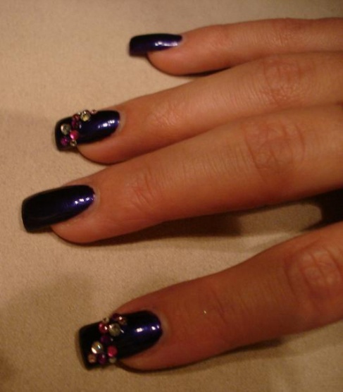 nehtíky vypadaj moc pěkně..já teda na tmavou nejsem ale sou hezký..a o kamínky bych se teda taky bála..já ted mám samolepky trochu vystouplých kytiček ze salonu a hned po 2dnech se lístečky olupují..takže nikdy více samolepky..nebo spíš až si to budu dělat sama a budu vědět fígle..takhle mi to v salonu nalepila na nehet-gel na tvrdý a pak jen přetřela skleněným lakem.tak asi proto..