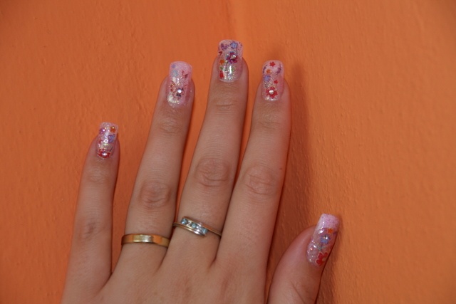 já si včera pět hodin dělala nehtíky..do půlnoci,uf..tak sem vám je vyfotila ale předem opět upozorňuji..že jsou moje druhé a že nejsou vůbec dokonalé..musim si ještě trochu upravit tvary at je mám stejné,včera už sem na to neměla sílu ani čas..
