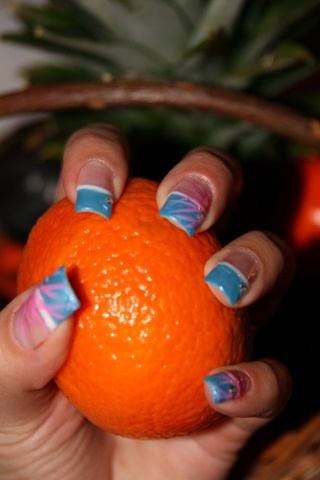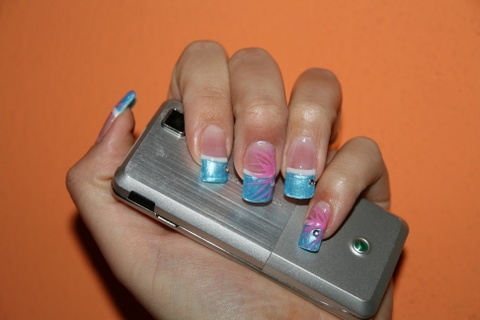 , škoda, že já se svýma nikdy nedocílím takového tvaru, líbí se mi, že se ti nezúžují, jinak jsou krásný, ale já bych to nechala bez té růžové(ač mám růžovou ráda), jen modré konce, linka, kamínek.....