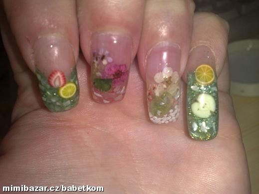 Mě se ty pravé sušené celkově moc nelíbí, není to mů styl(kamínky a fialová). ale tyhle fotky vypadají celkem výstižně. Asi se ti do gelu nějak připlácne a tak .