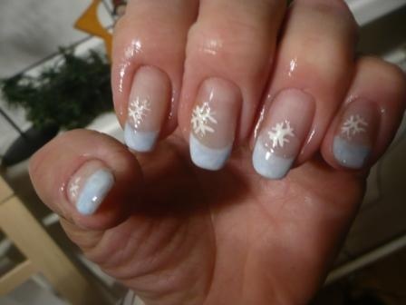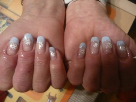 já jsem experimentovala,na fotce to není vidět,ale to co vypadá jako modrá francie,je modrej gel s bílou a jakoby spatlaný do takový blemtanice
