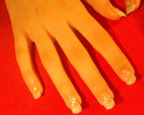 Taky jsem dnes dělala jedné holčině nehty.. Foto bohužel nic moc.. Je to stříbrná FM se stříbrnýma hvězdičkama..