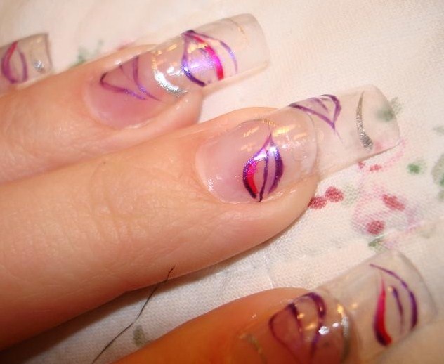 Jejda díky. Ono je to úplně jiné, než dělat nehty sobě. Sama už jsem ty holográfky měla na fialových třpitkách, mám je ráda. Jen se musí koupit co nejtenší a průhledné.