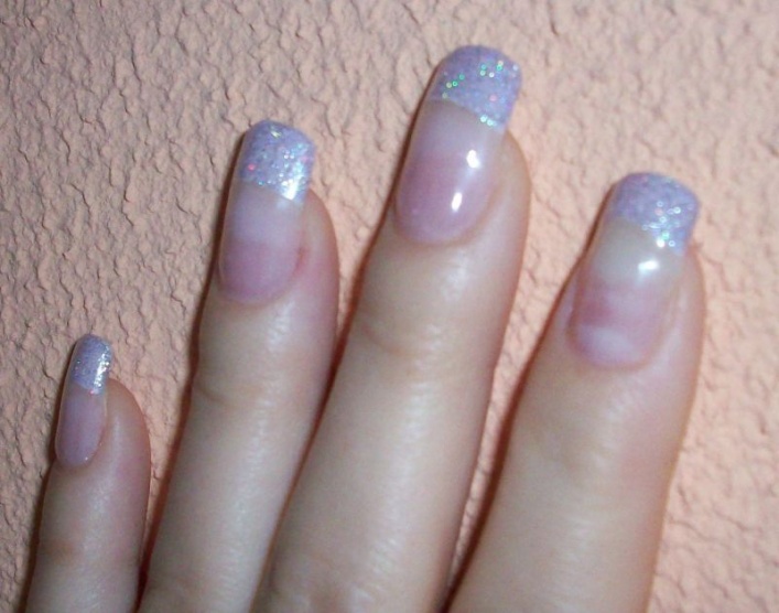 pokud jsem to dělala holčinám, tak jsem jim dala třpytky, tam kde končil vlastní nehet pod typem, aby jim nevadilo odrůstání, když si to nemohou sami zbrousit.