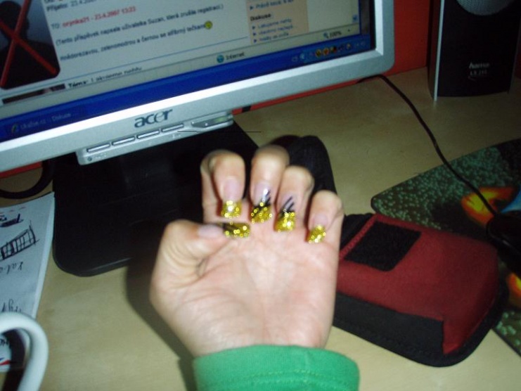 ahoj holky, tak včera mi udělala nehty kamarádka (tedy dělali jsme je tak napůl) a ozkoušeli jsme ty razítrka a laky co jsem měla u těch razítek jsou na nic, nejde to s nimi. Když jsme použili origoš, tak super, šlo to dobře. Tak musím zakoupit jiné laky a bude to super. Taky jsem si vyzkoušela jiný gel (od Expi) a je skoro stejný jako mám já od Lionu, možná malinko hustší, ten od Lionu se krásně jako by vyrovnává sám. Něco nového jsem pochytila a zase já předala. Až budu mít čas, tak nehýtky vyfotím