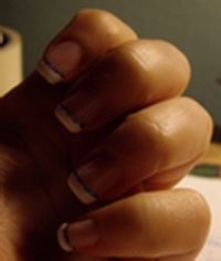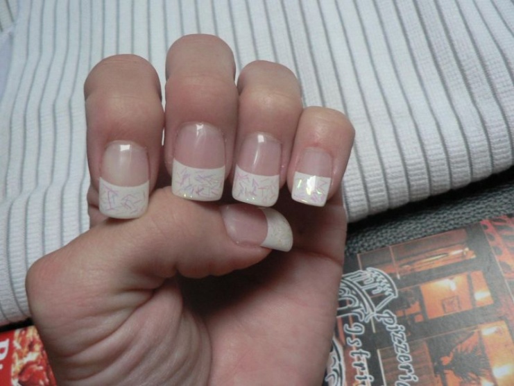 posílám fotku nehtů, co jsem si včera dělala...přiznám se francie mi moc nejde a tak jsem jí olemovala modrýma glitrama