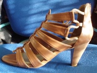 0Prodám zcela nové gladiátorky značky Zara - TRF. Jsou světle hnědé barvy. Výška podpatku je 8 cm. Délka stélky 24,5 cm.