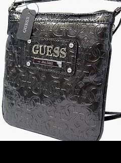 0Černá lesklá kabelka Guess, vyražené znaky, pár škrábanečků, jinak jako nová.