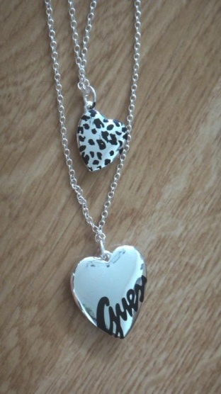 Krásný nový řetízek Guess. Oboustraný. Z jedné strany nápisy Guess, z druhé na jednom srdicku leopardí vzor, na druhem tučný nápis. Moc krásný, neunosím ho, je nový. PC 1500,--
