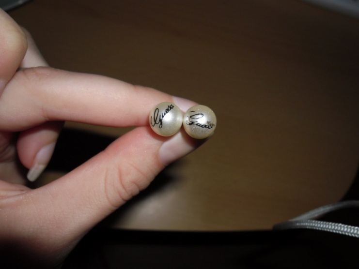 Prodám perličkové naušnice s nápisem Guess. Objednala jsem si je a 1 z nich má trochu odřený nápis. Třeba má někdo stejné a zrovna jednu potřebuje