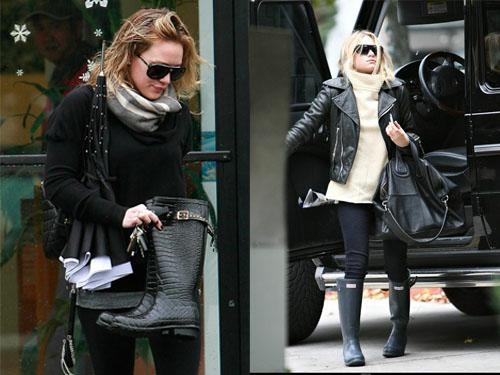 Hunterky mám, kupovala jsem je před 6 lety! v Anglii, a ani během dnešních trendů bych je nevytáhla jinam než na chalupu, na procházku se psem za deštivého dne nebo na práci na zahradě. Elegantní botu neuděláte ani z nich, ani z Gucci či jiných "ležérně elegantních" (