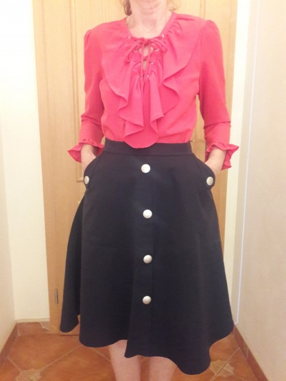 Červená halenka vel. 36, materiál polyester. Téměř nová. Na obrázku nabízím rovněž sukni vel. 38, zn. CHICWISH, materiál polyester. Cena 150 Kč, možno i jednotlivě.