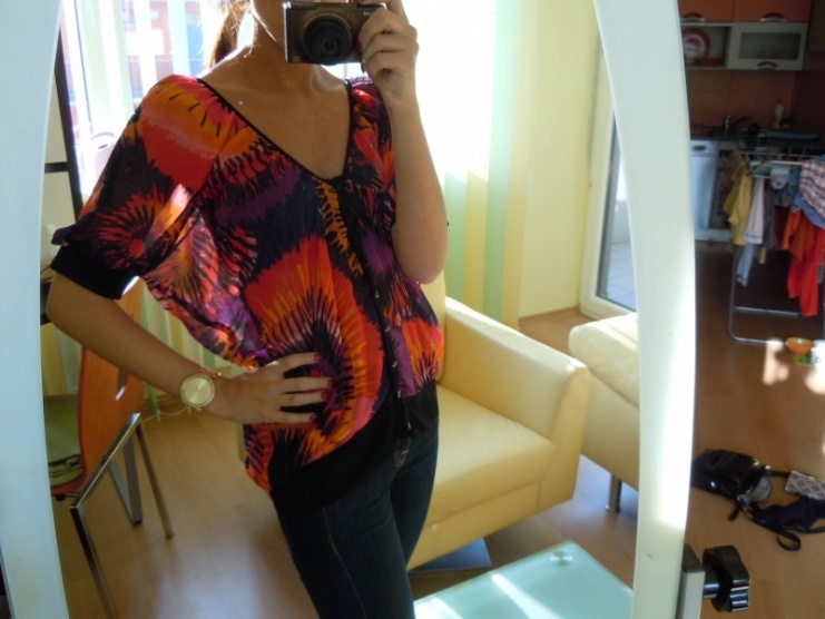 Hodí se na velikosti od XS - M. Pěkně se přizpůsobí. Volný střih.