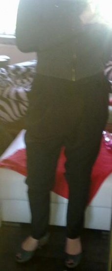 Tak abych učinila konec všem spekulacím o tom, zda jsou pro mě vhodné, tak jsem si jedny černé harémky pod nátlakem kamarádky koupila v Tescu za 160 kč (vel.40!)