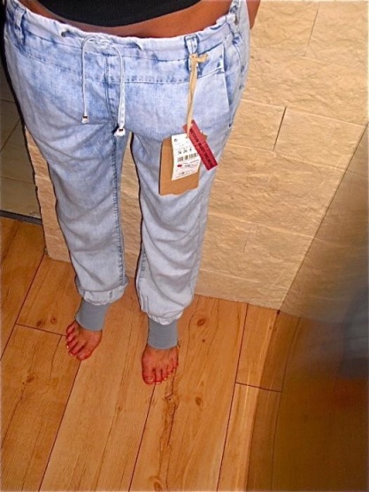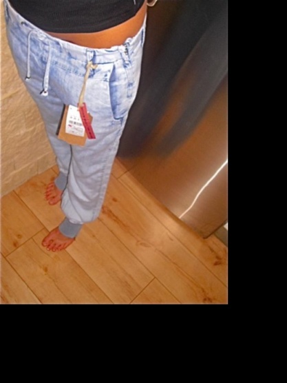Prodám, nové harímkové džíny s nízkým sedem,zakoupené tady na omlázku od slečny azuritec, foto vypůjčené. na boku je zapínání na zip, a na stahování šňůrkou, na nohavicíh je zakončený úplet taky se zipy, jsou nové včetně visačky, kdyby mi nebyli velké nedám je! Velikost je uvedená 36.nevyměnuji.