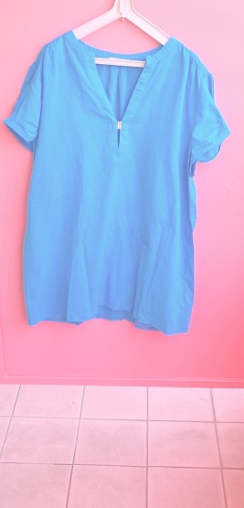 Lehký tenký top-tunika ze 100% hedvábí, rozměry 44 x 2 cm přes prsa, boky 55 x 2 cm, délka 70 cm, u krku zapínání na kovovou sponku