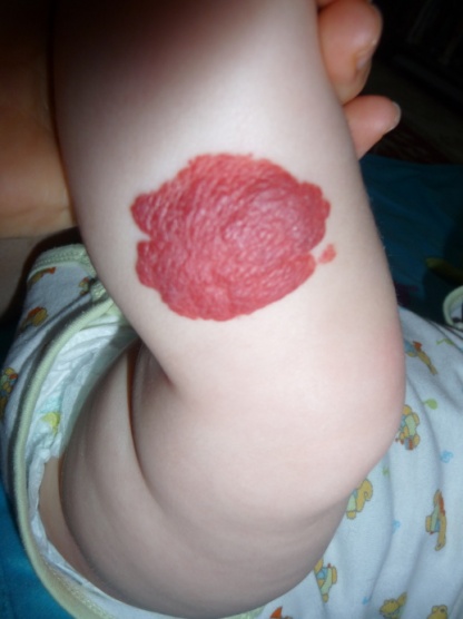 Přikládám foto, pro někoho asi hnus, pro nás radost a pokrok k budoucí bledé kůži bez hemangiomu