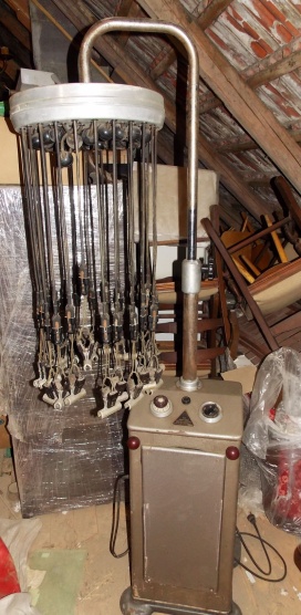 Natáčky na trvalou / to s kabelama / a zřejmě sušák.Moje babička o stroji na trvalou vyprávěla,že seděla s natáčkama na kabelech a pak byla krásně naondulovaná.Takže by to mohlo být ono.