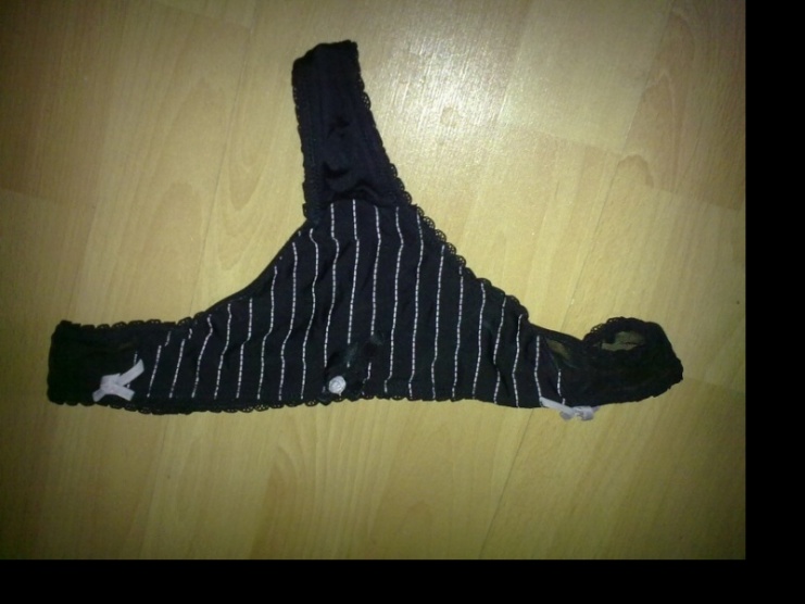 Hladká černá tanga se světle růžovými proužky a malou růžičkou