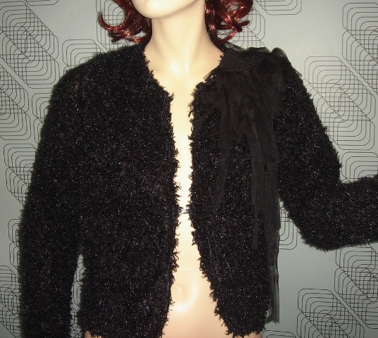 Často koncertuji a potřebovala bych nějaký elegantní svrchní kus oblečení, který by ladil k černým koncertním kalhotám (růžová sportovní mikina je k tomu jako pěst na oko). Jednou jsem potkala slečnu ve svetříku z lehké splývavé látky, který neměl žádný zip ani knoflíky, měl pouze zavazování u krku. Tím pádem příliš neobepínal tělo. Působilo to velmi lehce a elegantně.