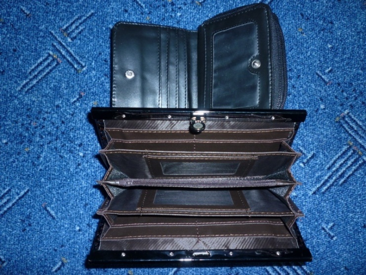Prodám tyto nenošené peněženky z lesklého materiálu. Nevyužiji je.