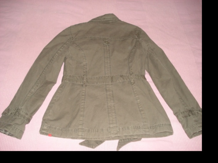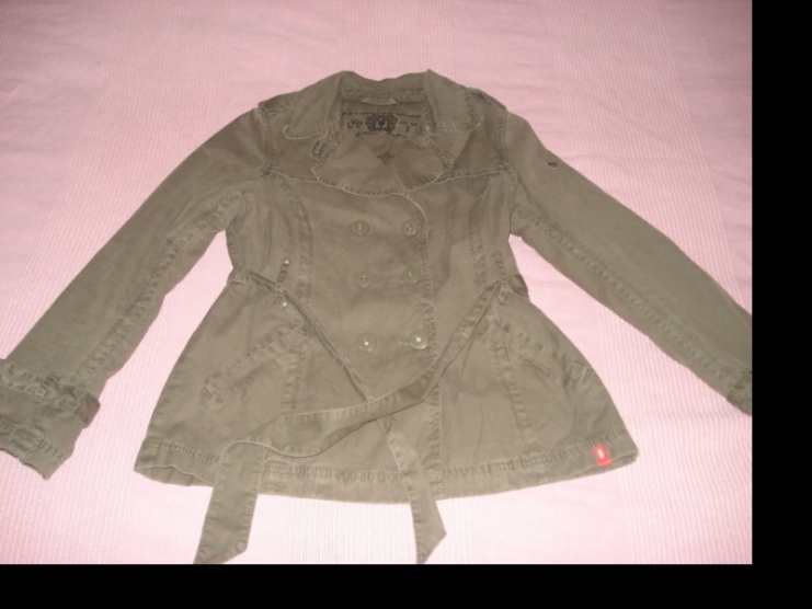 0Jarní kabátek Esprit s páskem. Barva hnědá - občas se podle světla jeví až do khaki.