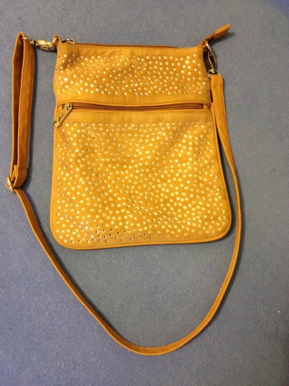 3Hnědá kabelka crossbody posetá stříbrnými kamínky, nošená asi pouze 5x. Šířka 22 - 25 cm, délka 29 cm. Pěkný, módní kousek.