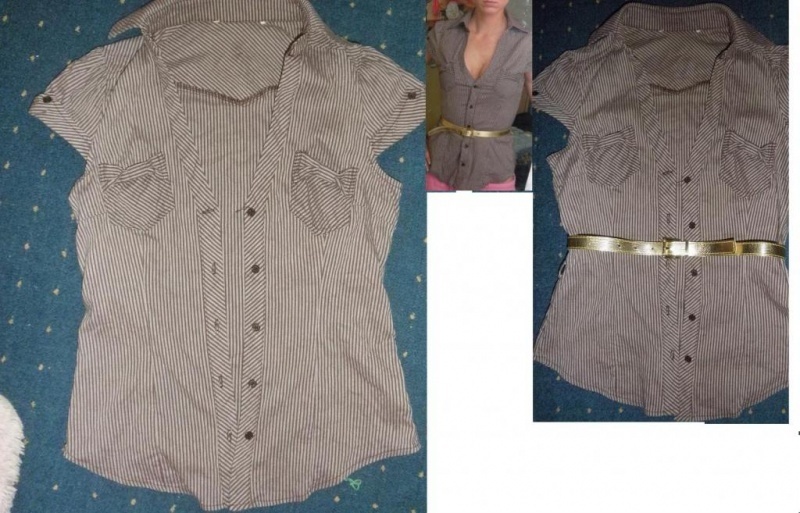 0Moc hezká košile nošená občasně,sedí na XS i S.Je k ní páseček z hnědé látky zlatý je ilustrativní,Moc pěkně a hezky sedí.zn.Tally WEIJL.