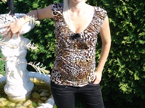 Zajímavý top leopardího stylu. Velikost M, ale padne jak S-ku, tak i L-ku Rozměry: délka: 63 cm (v natažené stavu) šířka: 39 - 50 cm. Cena 280 Kč vč. pošty