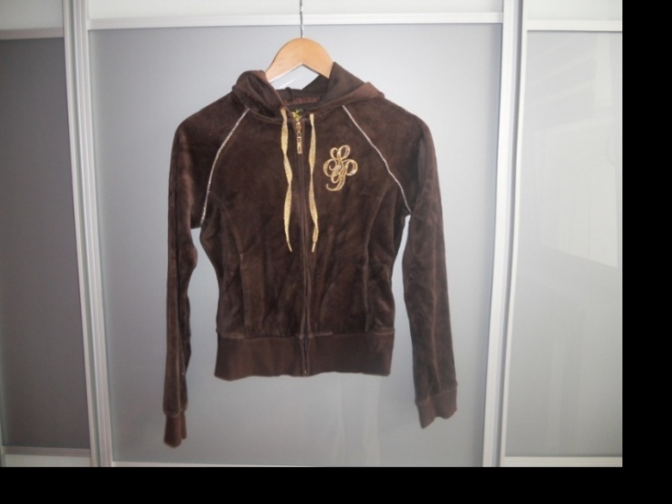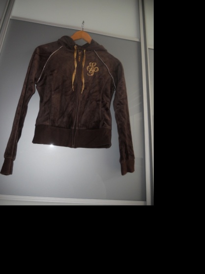 Prodám hnědou semišovou mikinu se zlatými aplikacemi a kapucí. Značka: Southpole. Vel. psaná M, ale odpovídá spíše S.
