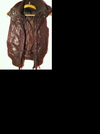 Péřová hnědá vesta značky Amisu. Pc kolem 600Kč. Nyní cenu navrhněte.