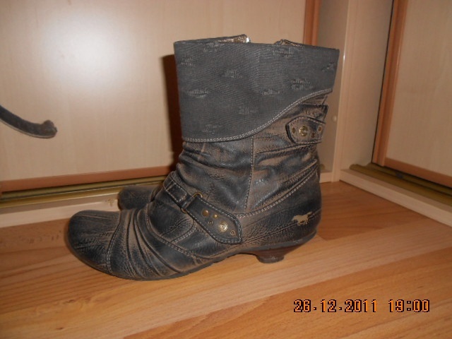 Prodám úžasné boty Mustang. Mají used styl, tzn, vypadají jako by byly hodně nošené. Nosila jsem je pouze párkrát, ani podpatek není sešlapaný. Barva je hnědá, podpateček je malinký, takže je vhodný i pro toho, kdo nemá rád podpatky. Na noze vypadají moc hezky, jsou pohodlné, já mám bohužel botů tolik, že vše neunosím. Velikost je 40 a odpovídá.