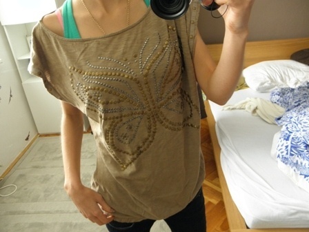 Prodám hnědé motýlkové tričko.. je na něm krásně vyobrazený motýlek ze cvočků.. prodám za 160kč plus pošta..