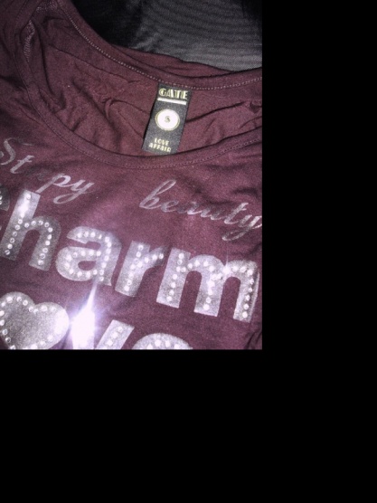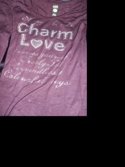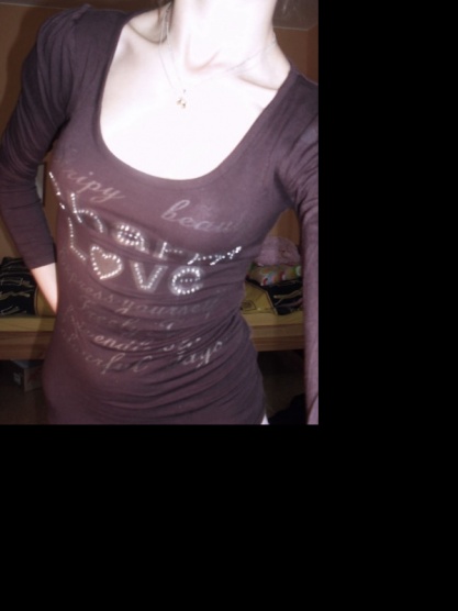 Prodám nošené hnědé tričko s potisky, kamínky a nápisy.