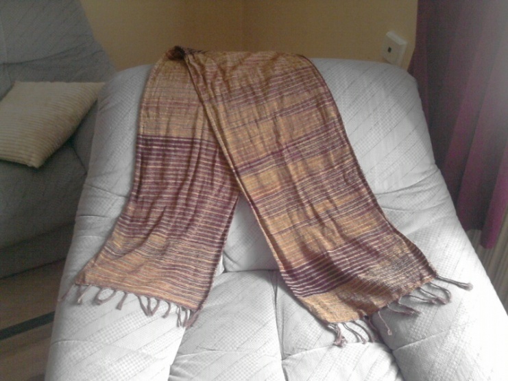 Krásná nová šála.Je z příjemného lehkého materiálu.Vynikající doplněk.Bohužel to nenosím.Špatný dárek.Cena 120+pošta (20-30Kč)