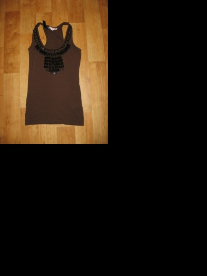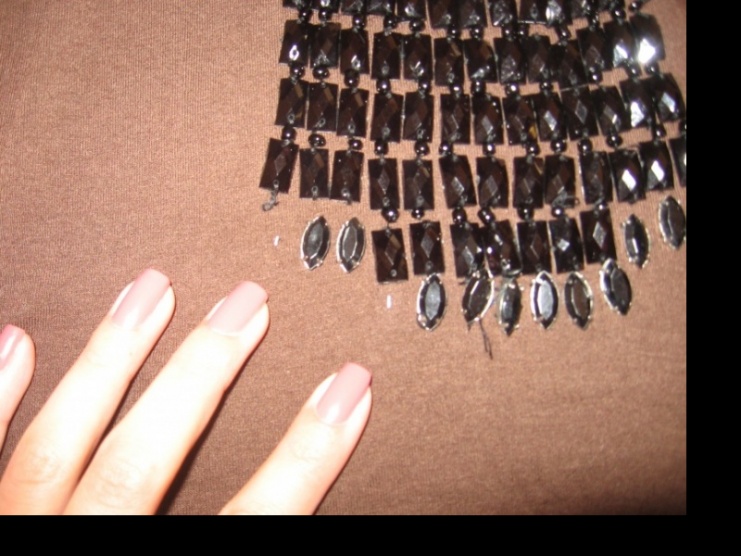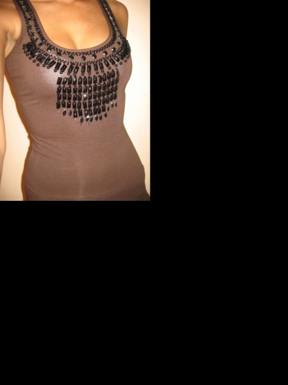 Kolem výstřihu a prsou zdobený černými kameny - dva chybí - viz.fotka.