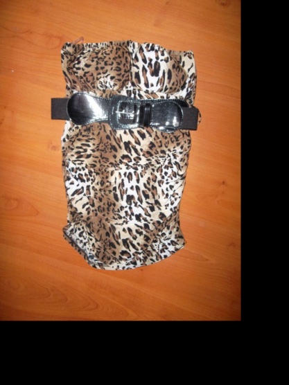 0Nabízím tygrovaný elastický topík, k legínům nebo jako minišatičky, skvělý chladivý materiál, Zakoupené v AMISU PC: 460,- mě bohužel malý. Dvakrát nošený, zachovalý bez vad