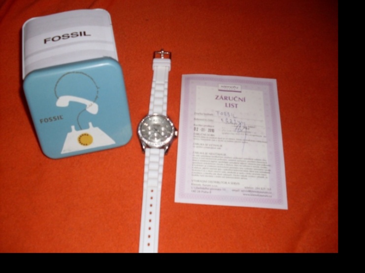 Prodám minimálně nošené hodinky Fossil, typ ES 2344 s bílým páskem.