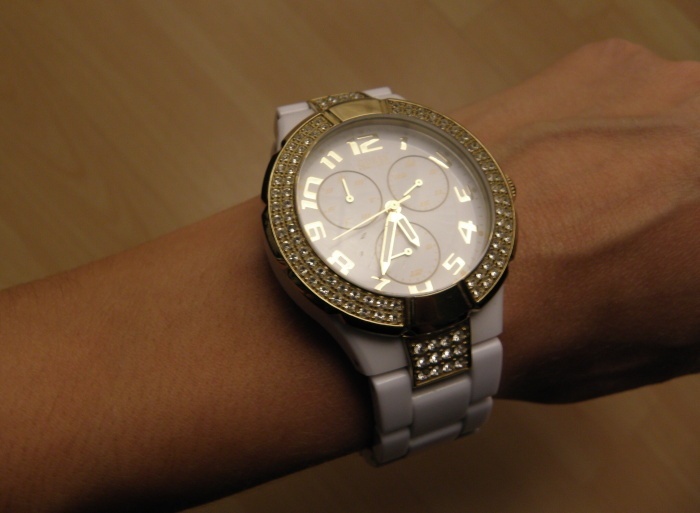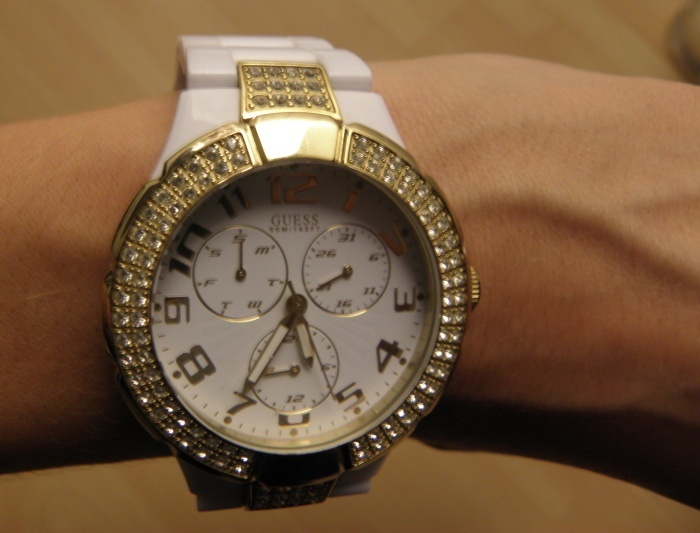 Prodám chvilku nošené hodinky guess, koupila jsem si celé zlaté takže tyto už neunosím - kupovala jsem je zde v eshopu http://www.hanymany.cz/detail/hodinky-guess/damske /hodinky-guess-prism-swarovski-white-gold-ceramic- U11623L1-W14540L1/
