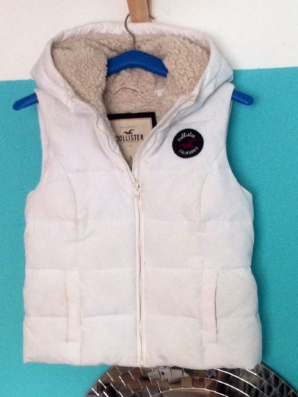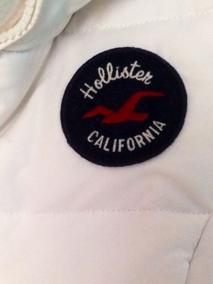 Velikost psaná S, sle může být i XS. Péřová. Vzadu gumička. Moc hezká. Kupována v Londýně. Uvnitř měkká. Barva bílá. Na přední straně Logo Hollister.