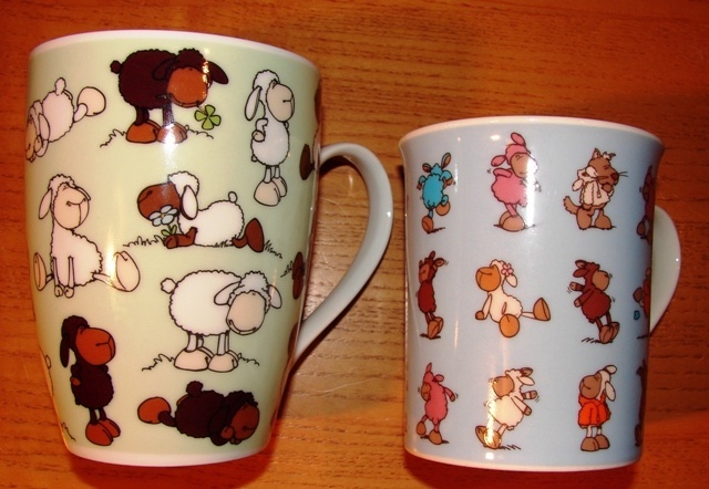 Porcelánový světle zelený hrníček zn. NICI, motiv ovečky.
