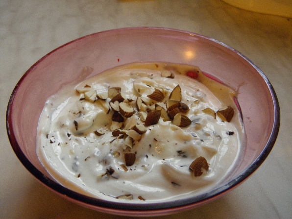 V: tvaroh s medem, hořkou čokoládou a mandlemi